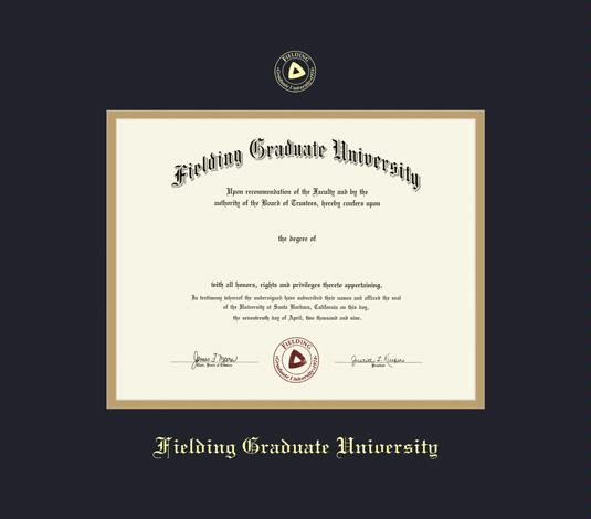 Fielding Graduate University Diploma (Pre 6/19) (Diploma measures 8.5x11) Frame with Black and Gold Double Mat and Gold Embossing