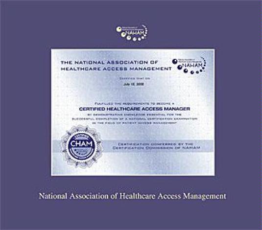 National Association of Healthcare Access Management Certificate - CHAM Frame with Royal Blue Mat and Gold Embossing