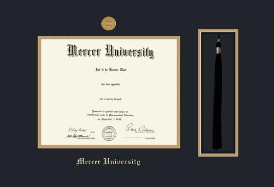 Mercer University Diploma - BA/MA with Tassel Cut-out and Medallion Frame Featuring a Black and Gold Double Mat with Gold Embossing