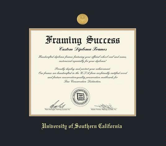University of Southern California Diploma - MD/JD/PhD-Pharmacy/Dentistry Frame with Medallion, Black and Gold Double Mat, and Gold Embossing