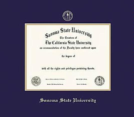 Sonoma State University Diploma (Pre 9/24) Frame with Navy Blue and Gold Double Mat and Gold Embossing