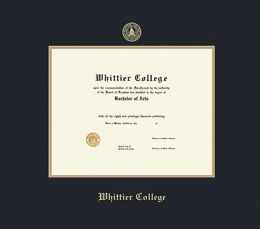 Whittier College Diploma (Spring 2001 to Present) Frame with Black and Gold Double Mat and Gold Embossing