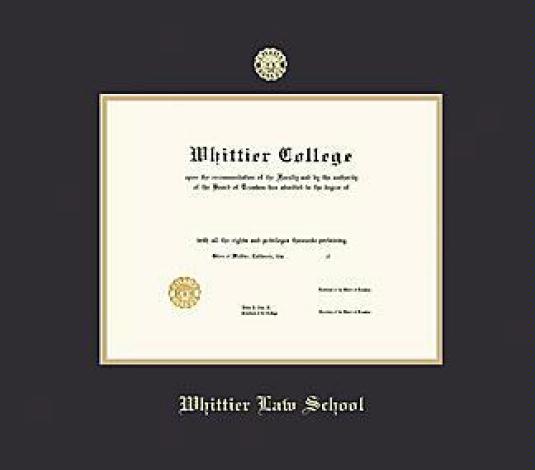 Whittier College Diploma - Law Frame with Black and Gold Double Mat and Gold Embossing