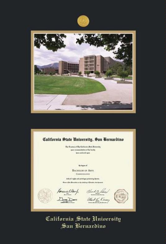 California State University - San Bernardino Diploma (9/07 to Present) and Photo Frame with Medallion and Black and Gold Double Mat and Gold Embossing