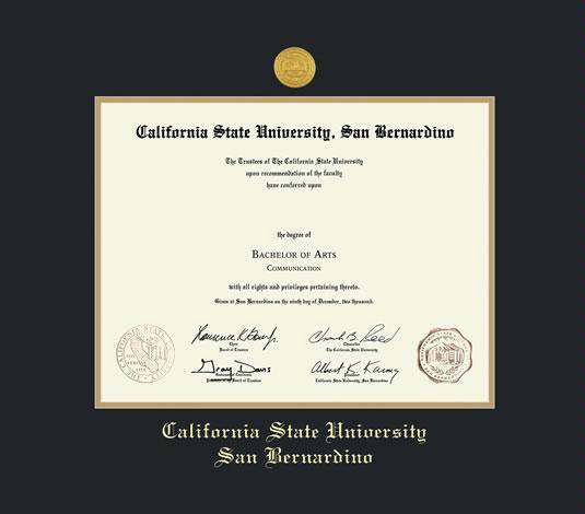 California State University - San Bernardino Diploma (9/07 to Present) Frame with Medallion, Black and Gold Double Mat and Gold Embossing
