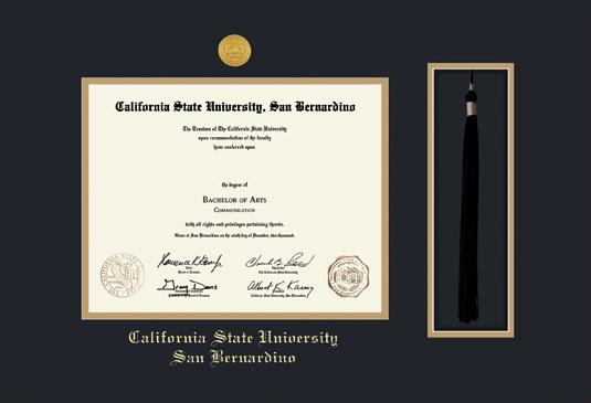 California State University - San Bernardino Diploma (9/07 to Present) Frame with Medallion, Tassel Cut-out, Black and Gold Double Mat and Gold Embossing