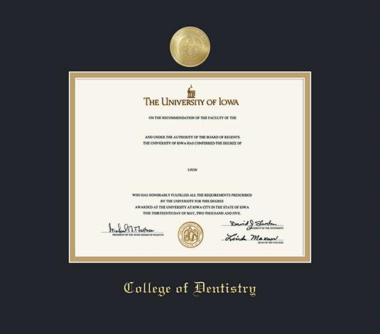 University of Iowa Diploma - Dentistry Frame with Medallion and Black and Gold Double Mat and Gold Embossing