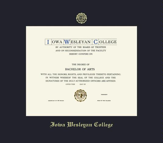 Iowa Wesleyan College Diploma Frame with Black Mat and Gold Embossing