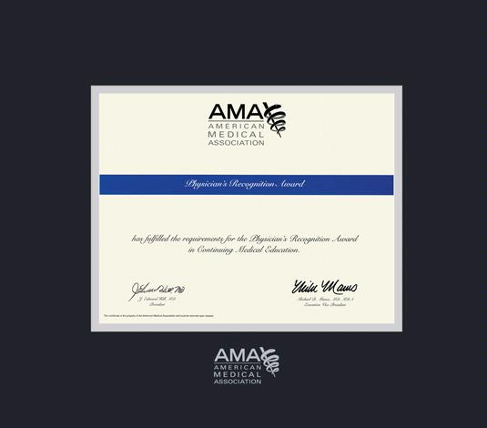 American Medical Association Certificate (9/05 to Present) Frame with Black and Silver Double Mat and Silver Embossing
