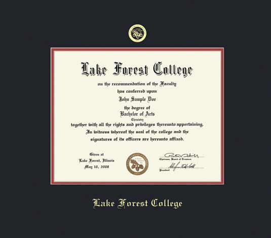 Lake Forest College Diploma Frame with Black and Red Double Mat and Gold Embossing