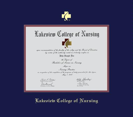 Lakeview College of Nursing Diploma (2007 to Present) Frame with Navy Blue and Maroon Double Mat and Gold Embossing
