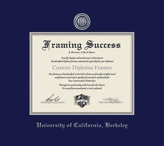 University of California- Berkeley Diploma - BA/MA/PhD (1/15 to Present) Frame with Medallion and Navy Blue and Paloma Double Mat and Silver Embossing