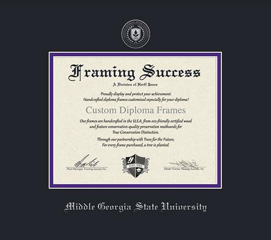 Middle Georgia State University Diploma - Associates/BA Frame with Black and Purple Double Mat and Silver Embossing