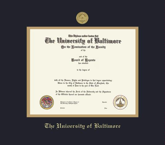University of Baltimore Diploma - BA/MA Frame with Medallion and Black and Gold Double Mat and Gold Embossing