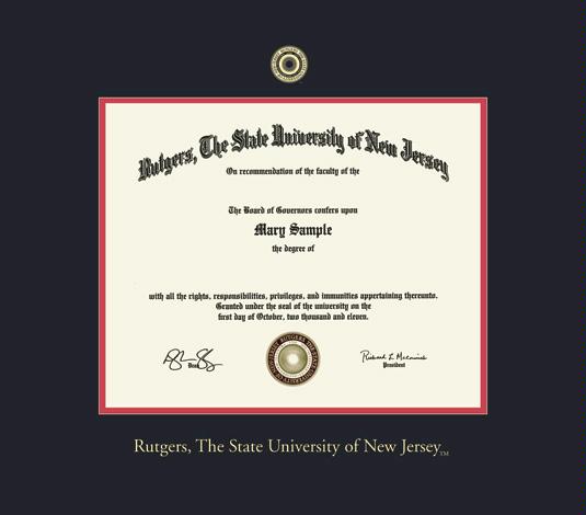 Rutgers University (New Brunswick) Diploma - Masters (7/14 to Present) (measures 11 X 14) Frame with Black and Red Double Mat and Gold Embossing