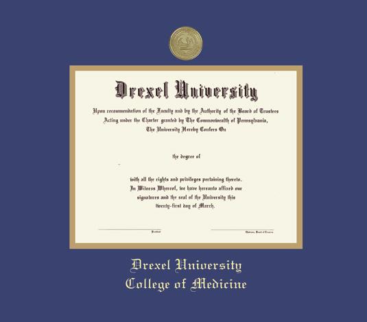 Drexel U. Center City HC Diploma - MD Frame with Medallion and Royal Blue and Gold Double Mat and Gold Embossing