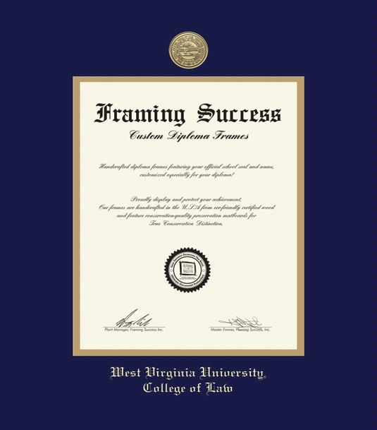 West Virginia University- Downtown Campus Diploma - Law (6/19 to Present) Frame with Medallion and Navy Blue and Gold Double Mat and Gold Embossing